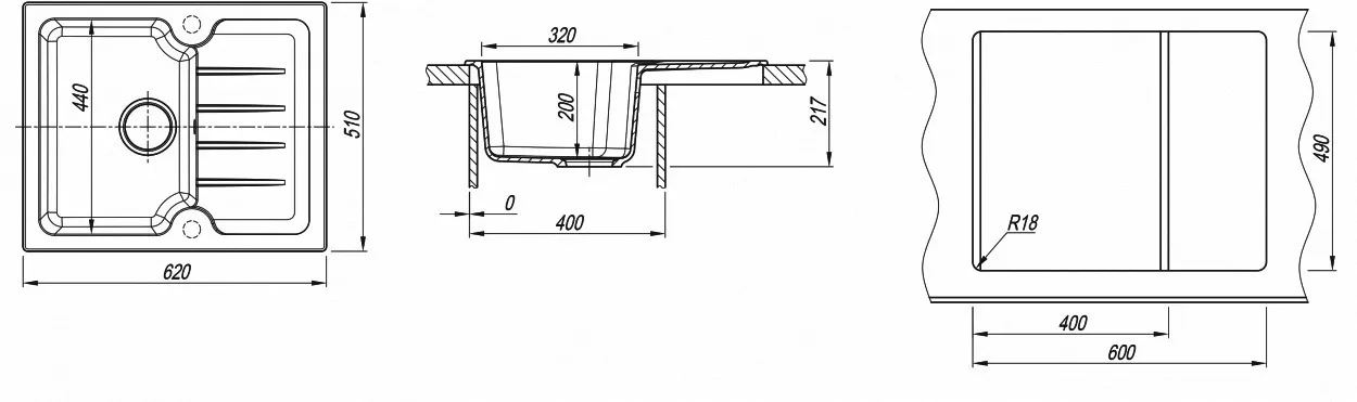 Chiuvetă de bucătărie Dr.Gans Lora, 620х510 mm, Grafit (VOR57697)