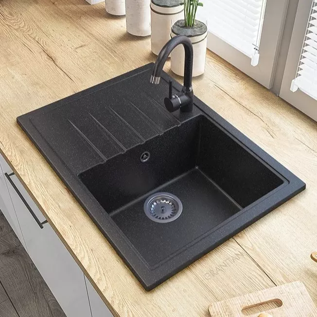 Chiuvetă de bucătărie Granitan Calypso 680x490 mm, Black Dappled