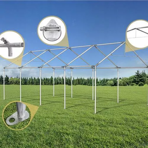 - Structura este realizată din țevi galvanizate, 38 mm, durabile și rezistente la condiții meteorologice nefavorabile;