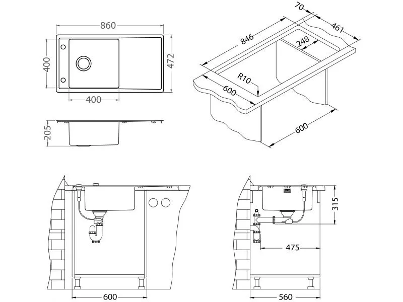 Chiuvetă de bucătărie Alveus Stricto 20 860x472 mm, Inox (1124364)
