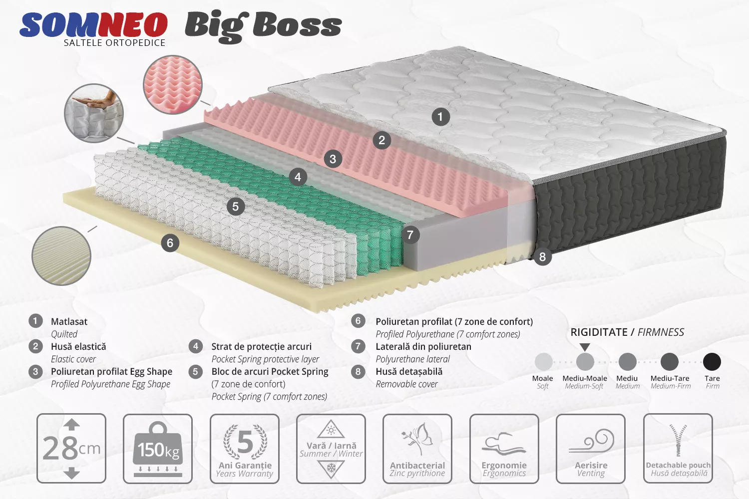 | Nivelul fermității | Mediu-moale |