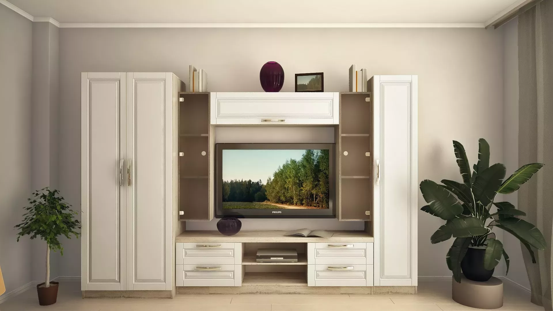 Alte articole din set "Living Bafimob Elena-F cu sticla (3m) (ТV-1,2m) cu elemente frezate (300 cm), Corton Stejar/Alb stejar":