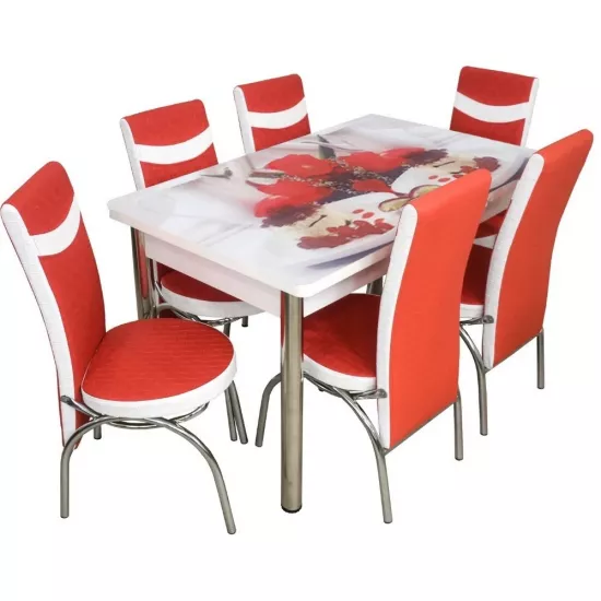 Set masa extensibila cu 6 scaune Kelebek ES-301, 80x130/170x75