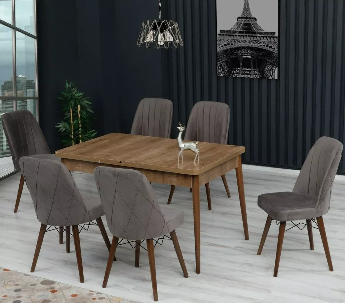 Set masa extensibila cu 6 scaune Kelebek ES-625, 80x130/170x75