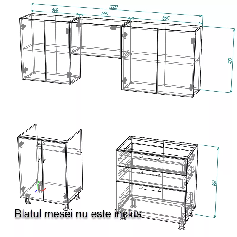 Bucatarie modulara Smartex K2 2.0 m, PAL, Alb/Grafit