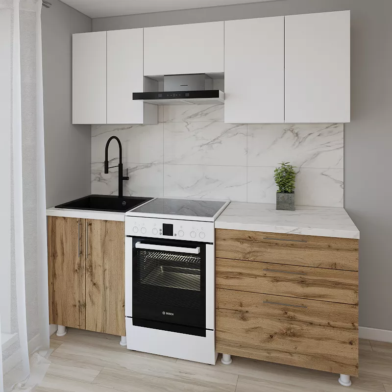 Bucatarie modulara Smartex K2 2.0 m, PAL, Alb/Stejar inchis