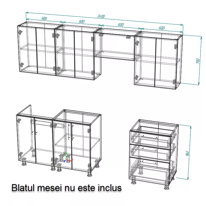 Bucatarie modulara Smartex K2 2.4 m, PAL, Alb