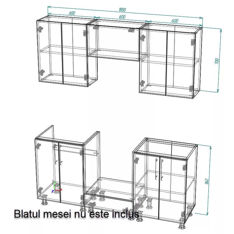 Bucatarie modulara Smartex K3 1.8 m, PAL, Alb/Grafit