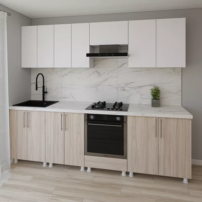 Bucatarie modulara Smartex K3 2.6 m, PAL, Alb/Stejar Deschis