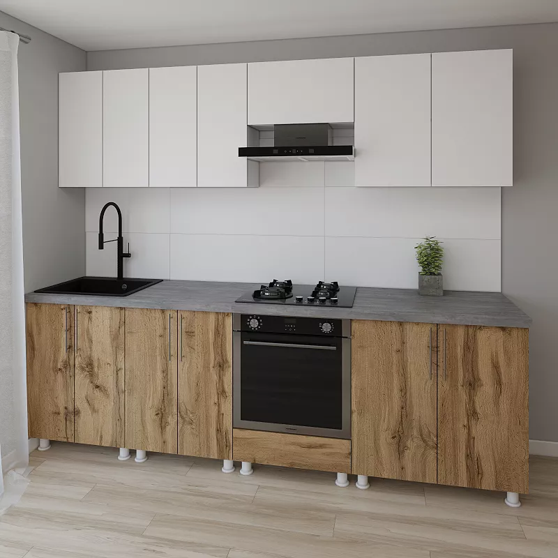 Bucatarie modulara Smartex K3 2.6 m, PAL, Alb/Stejar inchis