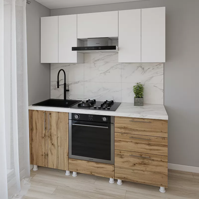 Bucatarie modulara Smartex K4 1.8 m, PAL, Alb/Stejar inchis