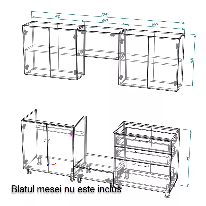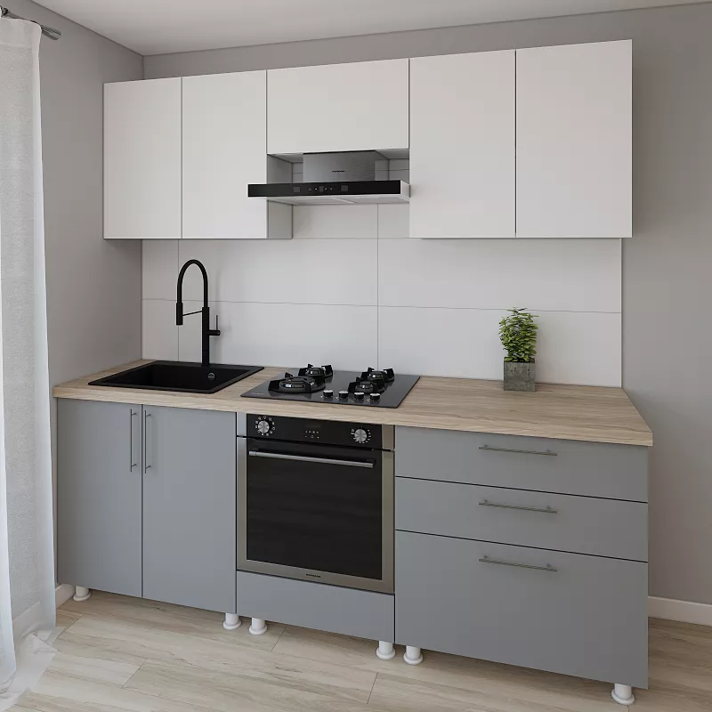 Bucatarie modulara Smartex K4 2.2 m, PAL, Alb/Grafit