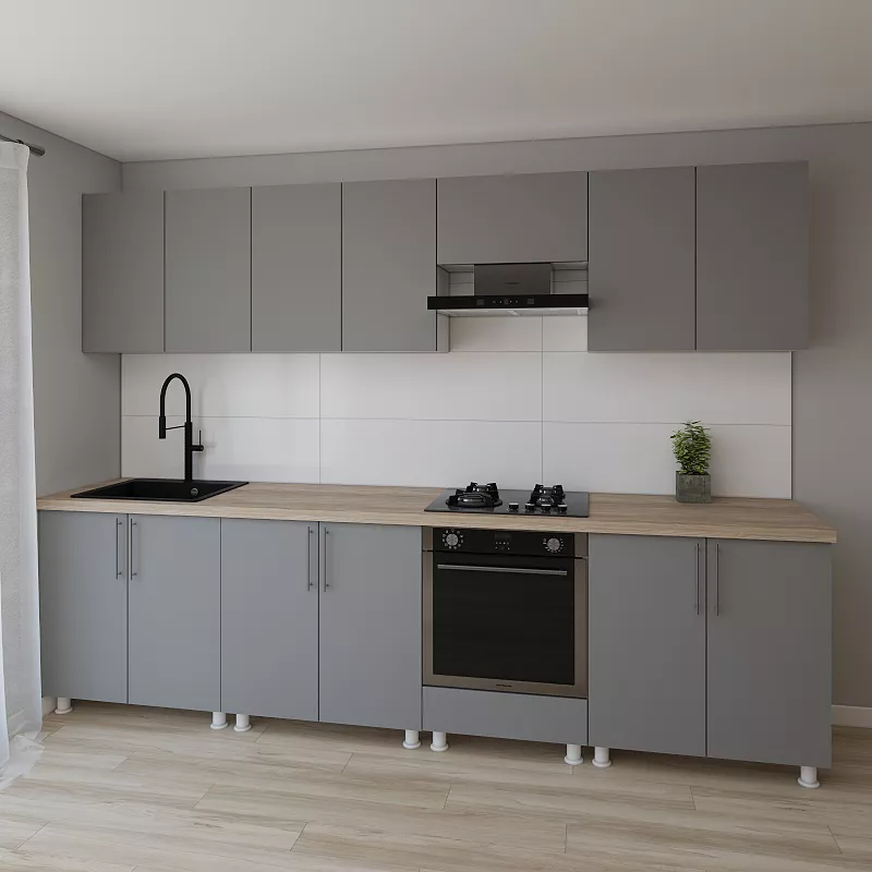 Bucatarie modulara Smartex K4 3.0 m, PAL, Grafit