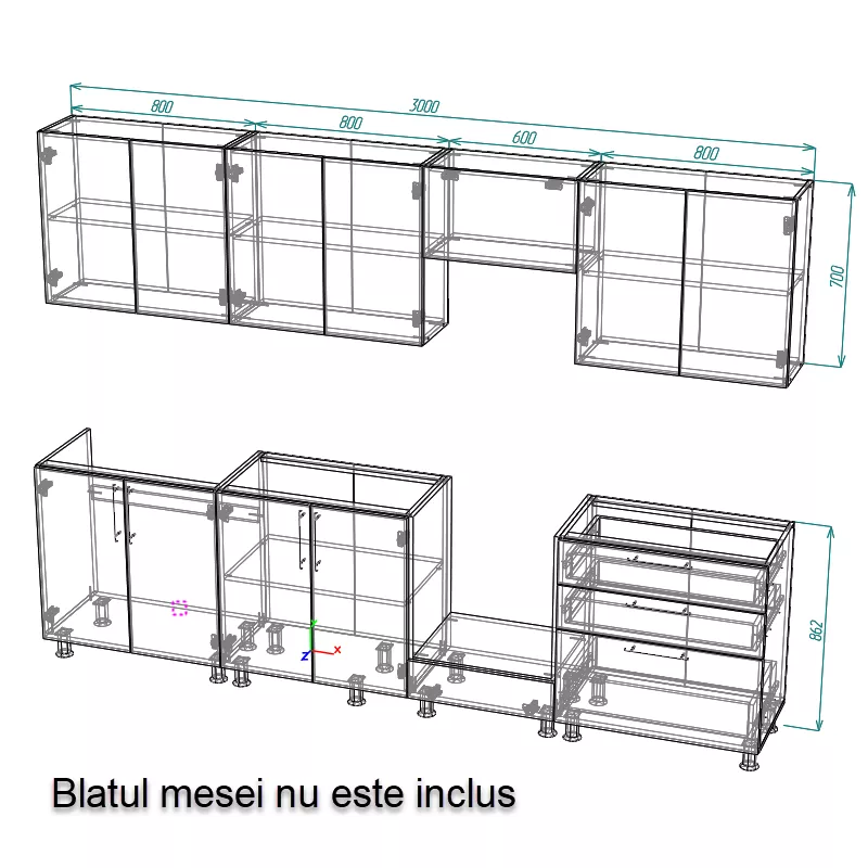 Bucatarie modulara Smartex K4 3.0 m, PAL, Stejar Deschis
