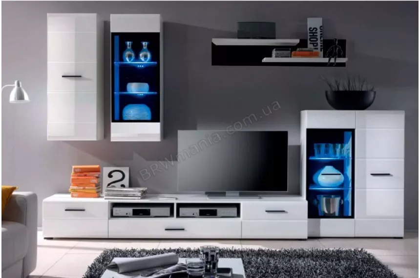 Comoda TV Yasen Vusher RTV2D1S (200 cm), Nimphea Alb/Alb Lucios