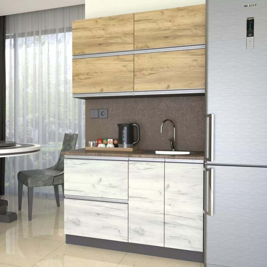Bucatarie Yasen Madera 1.2 m, PAL, (dulap sub chiuvetă) Stejar Kraft Auriu / Stejar Kraft Alb