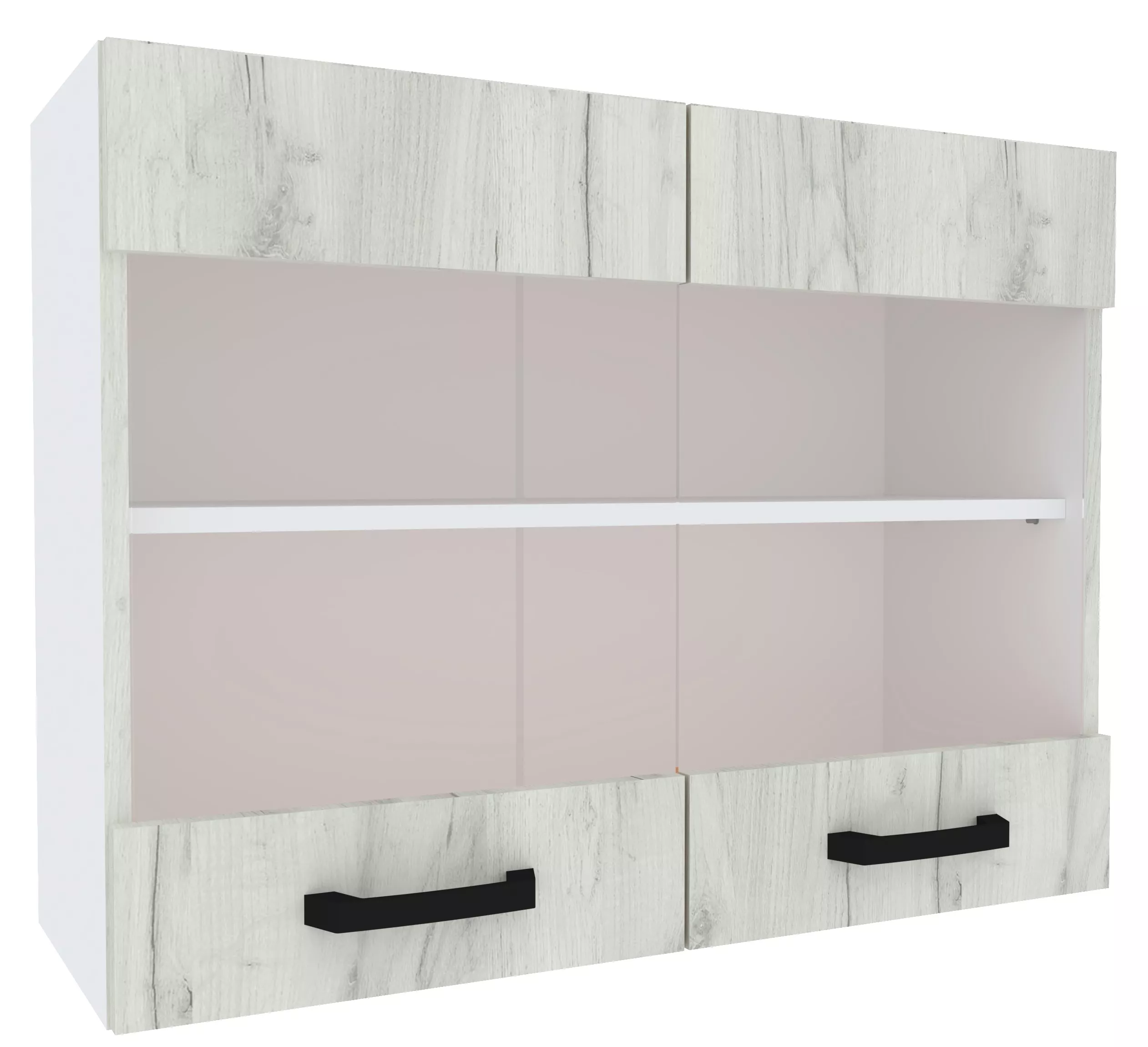 Modul superior Yasen Samanta 80 vitrina, Pal, Alb/Stejar Kraft Alb