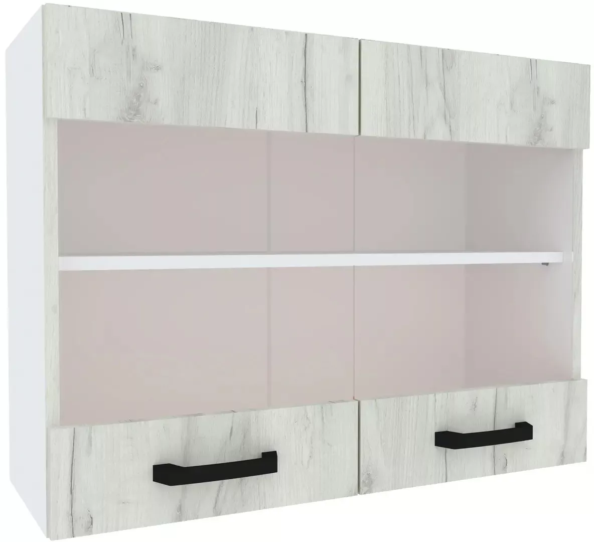 Modul superior Yasen Samanta 80 vitrina, Pal, Alb/Stejar Kraft Alb