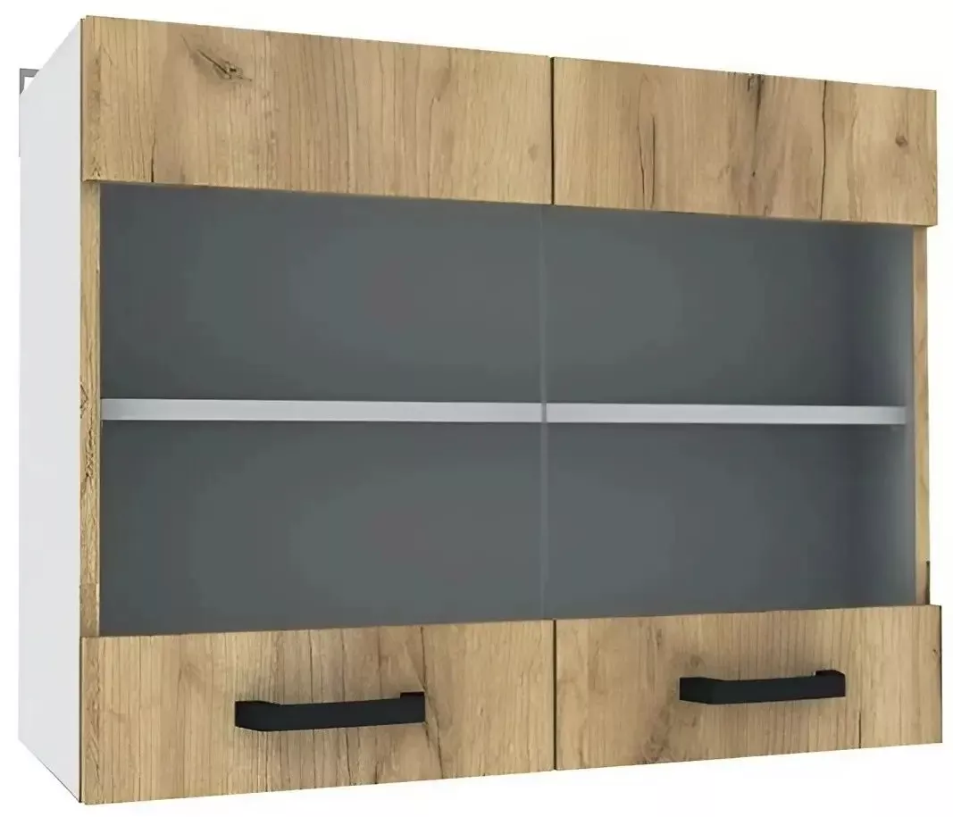 Modul superior Yasen Samanta 80 vitrina, Pal, Alb/Stejar Artisan