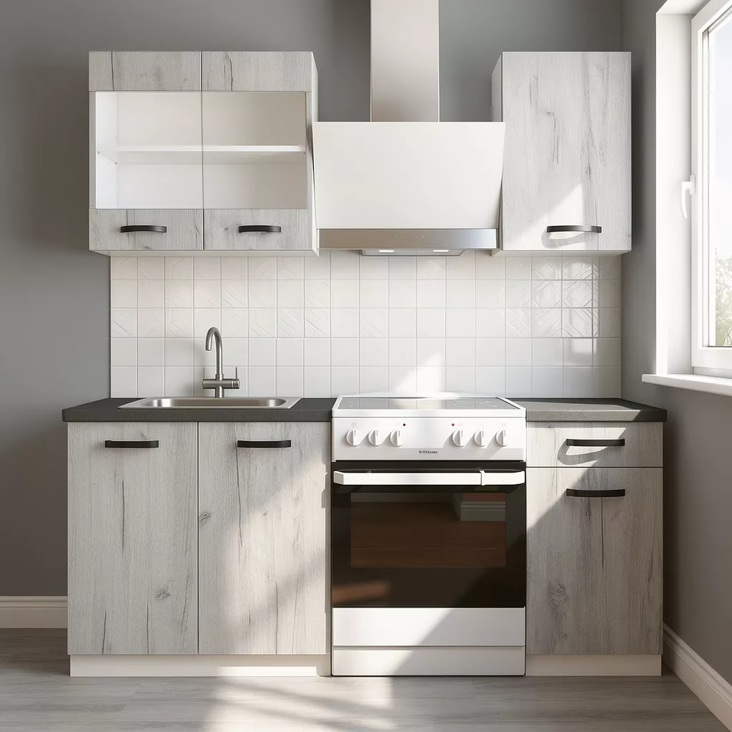 Bucatarie modulara Yasen Samanta 1 1.2 m, PAL, Stejar craft alb /Alb