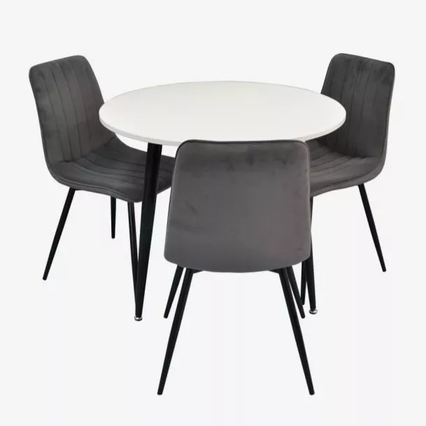Masă pentru bucătărie Eva DT-404-3B, alb mat/negru