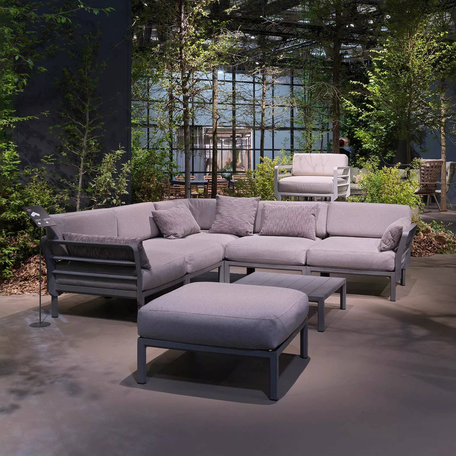 Design rafinat, plăcut din punct de vedere estetic: liniile curate și echilibrate se dezvoltă pe orizontală, creând un sentiment de profunzime și lungime; Structura din plastic reciclat este solidă și durabilă, dar ușoară vizual, cu secțiuni triunghiulare modulare și detalii rotunjite. Volume mari, scaun confortabil, adânc și modularitate flexibilă, armonioasă.