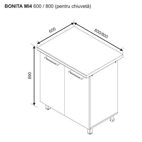 Modul inferior Ambianta Bonita MI4 600 chiuveta, MDF, Alb