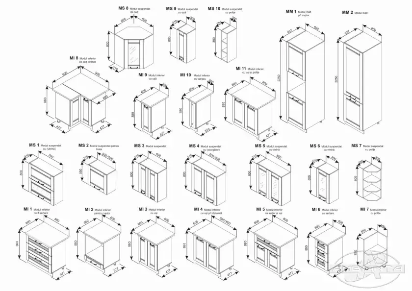 Modul inferior Ambianta Felicia MI8 900 de colt, Gri