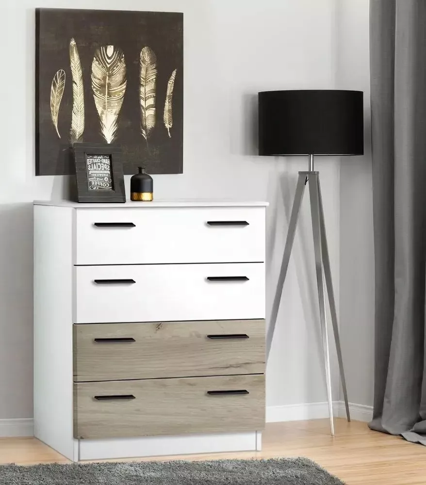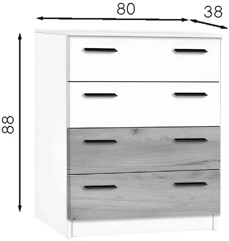 Comodă Modern Andi 4B (80 cm), White/Craft Oak Gray