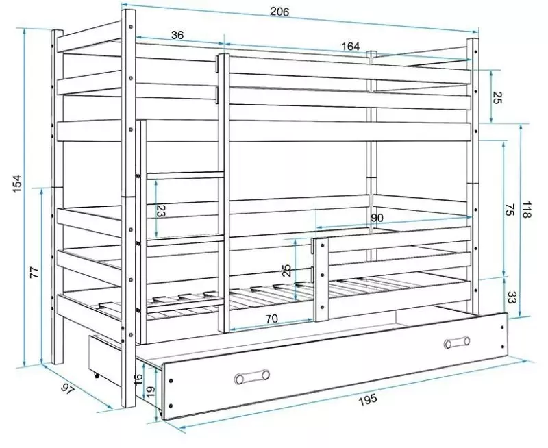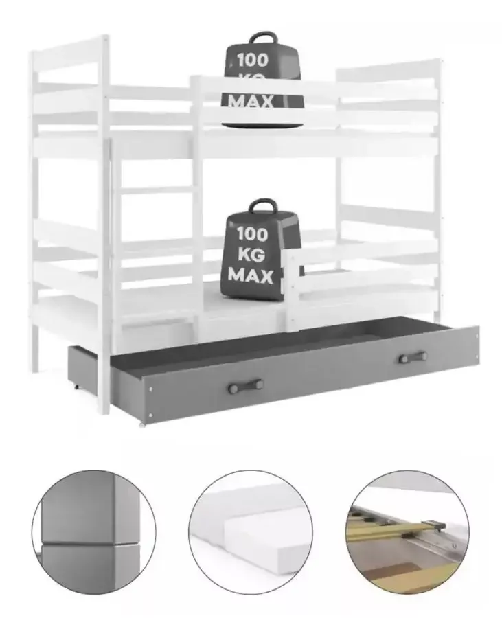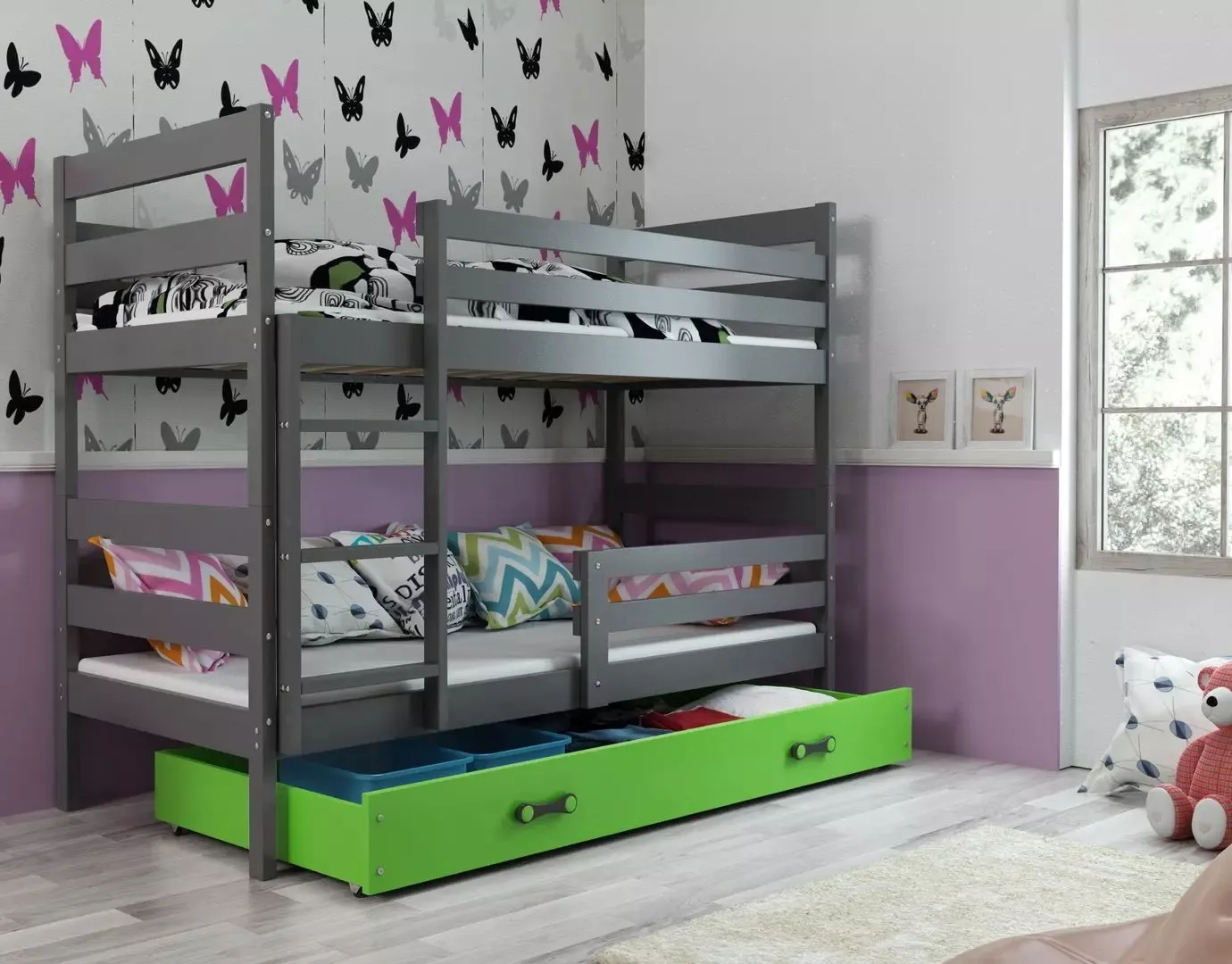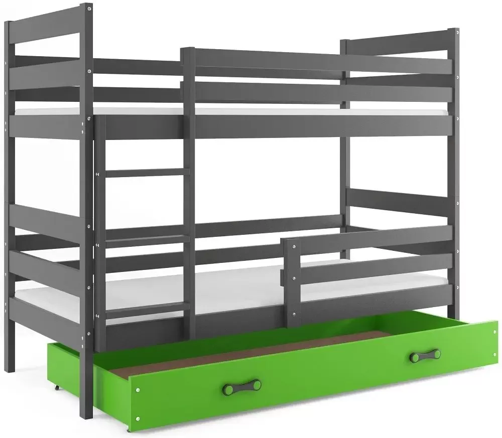 Pat copii BMS Group Eryk, sertar/2 saltele, 90x200 cm, Graphite/Green