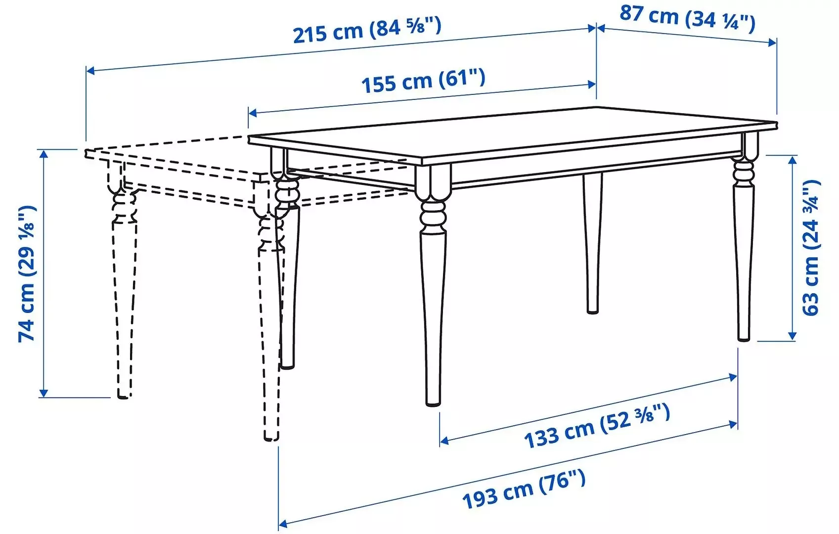 | Dimensiunea mesei (l×L) | 155x87 cm |