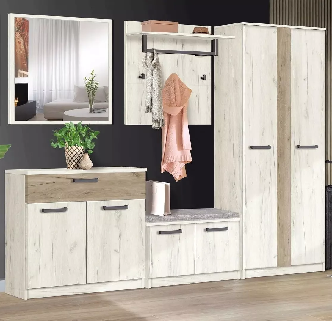 | Setul conține | Dulap: 700х2000х380 mm, Tumba-bancheta: 700х480х380 mm, Tumba: 800х880х380 mm, Cuier: 700х800х260 mm, Oglinda: 700х800х20 mm |