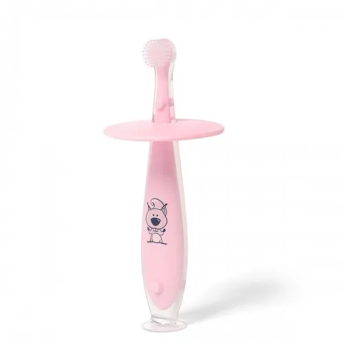 Periuța de dinti din silicon moale, cu un limitator care protejează impotriva introducerii acestuia prea adânc in gură. Este destinată igienei orale zilnice si poate fi utilizată pentru masarea gingiilor copiilor care incă nu au dinți. Designul jucauș face din periajul dinților o activitate distractiva. Ideală pentru învațarea periajului independent al dinților.