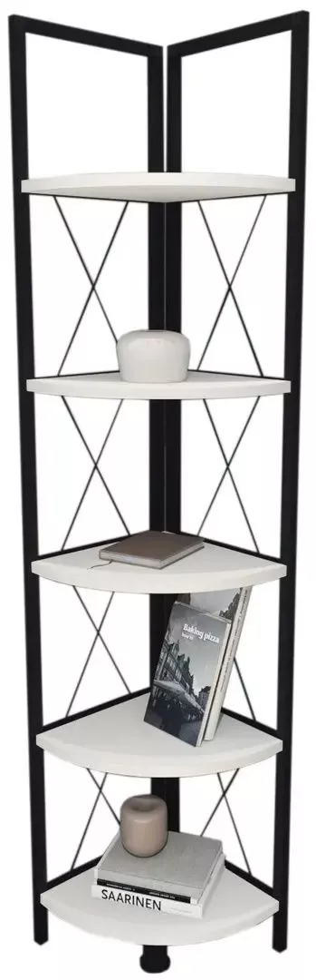 Raft de colț Fabulous 5 Shelves, 33,5 cm x 159,5 cm x 33,5 cm, White/Black
