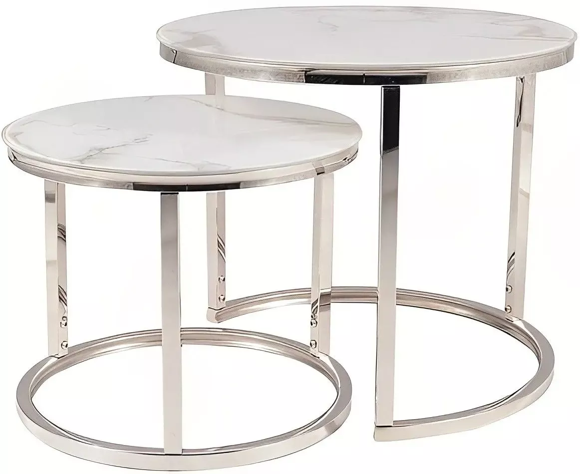 Set masute pentru reviste Signal Atlanta B II, White Marble/Chrome