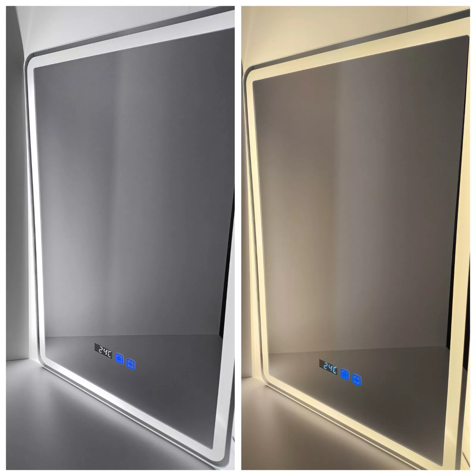 Oglindă pentru baie PS LED cu ceas și încălzire, 72x90cm