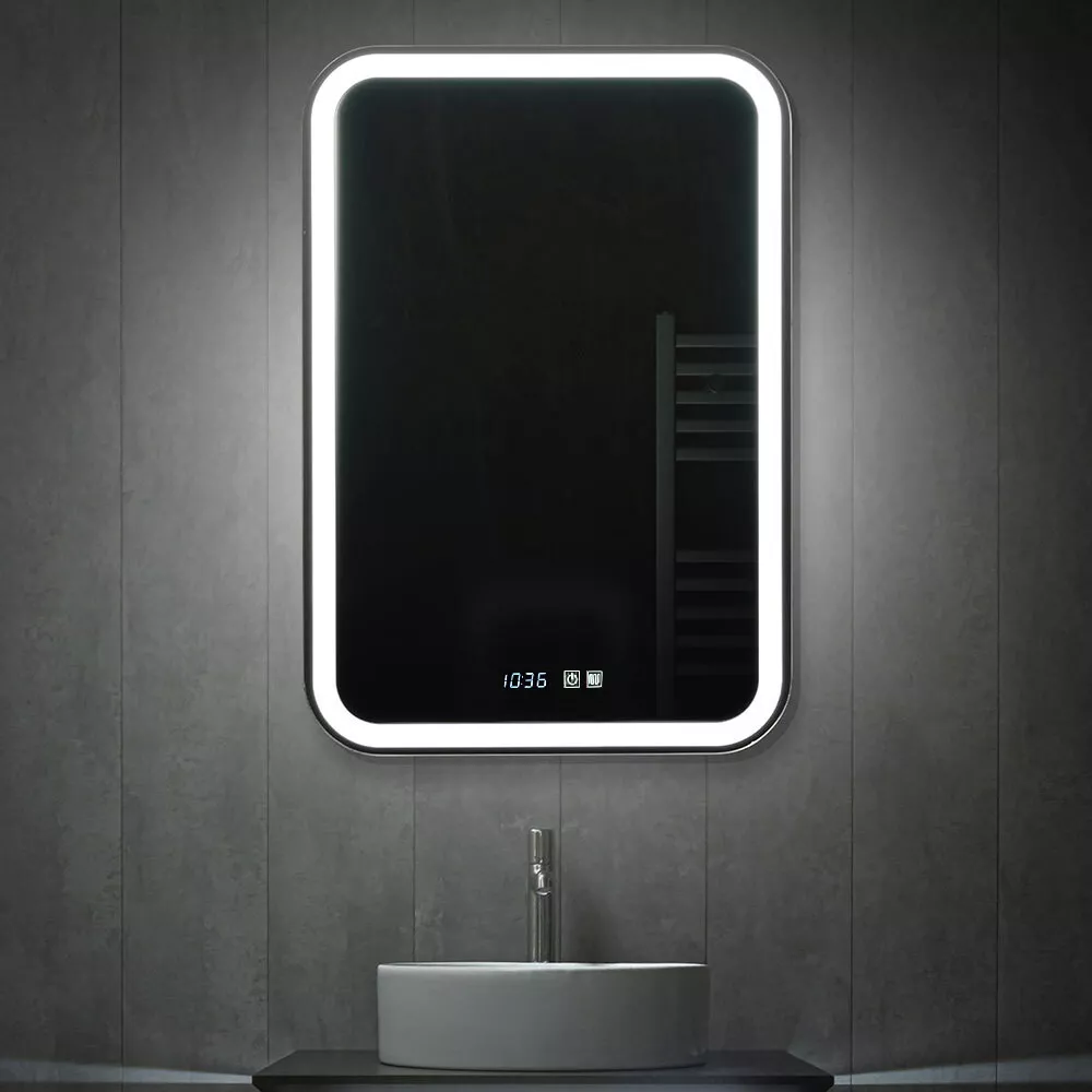 Oglindă pentru baie PS LED cu ceas și încălzire, 72x100cm