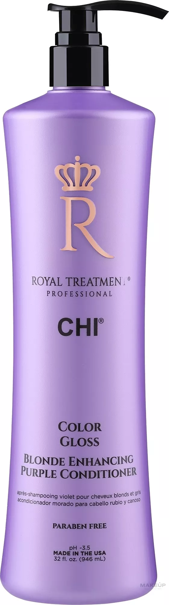 Sampon pentru eliminarea nuanței gălbuie a părului CHI Royal Treatment Color Gloss Blonde Enhancing Purple Shampoo, 946 ml