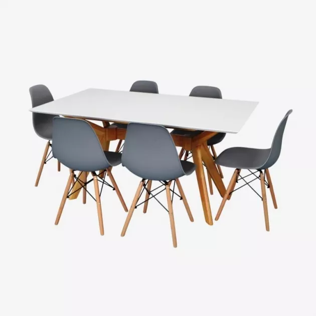 Set de mobilă Eva Raffles Rectangular White/Bella beech + 6 LC-021 Grey