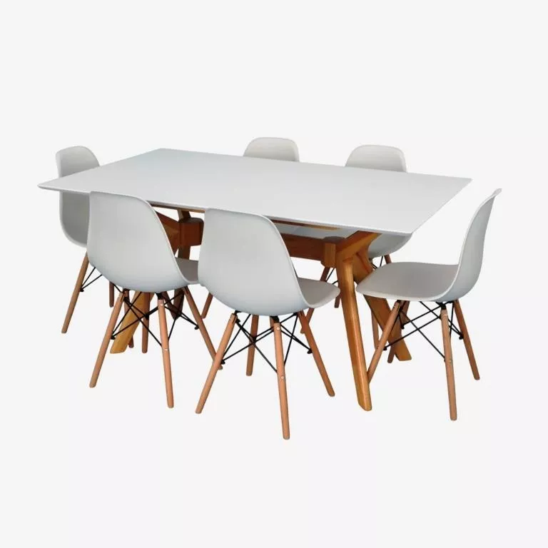Set de mobilă Eva Raffles Rectangular White/Bella beech + 6 LC-021 White