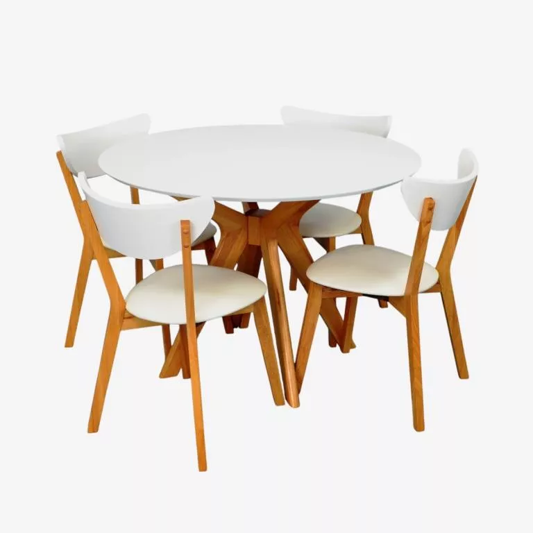 Set de mobilă Eva Raffles Round White/Bella beech + 4 CAMEROON White/Bella beech