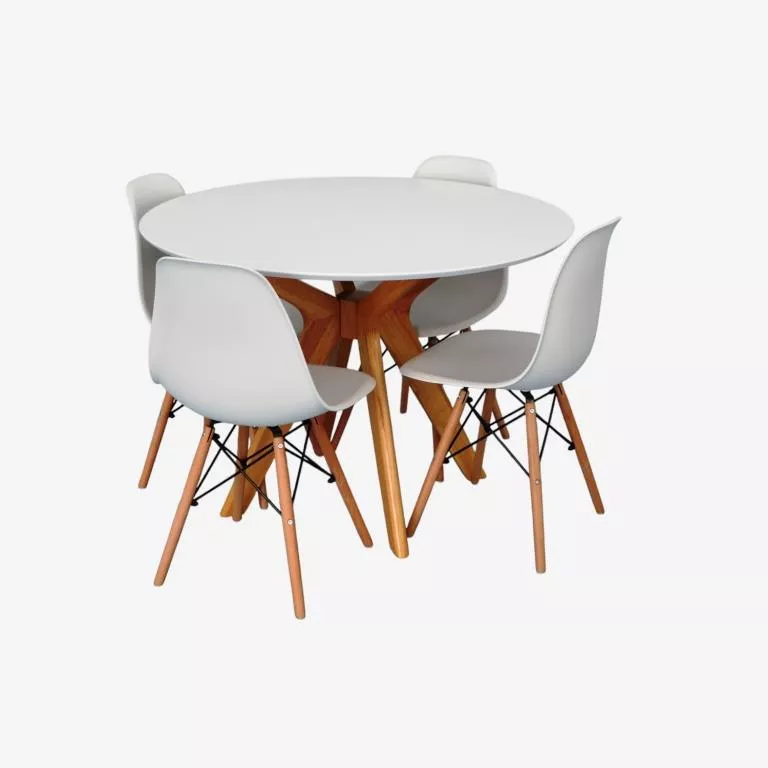 Set de mobilă Eva Raffles Round White/Bella beech + 4 LC-021 White