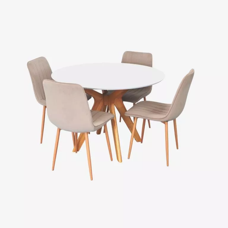 Set de mobilă Eva Raffles Round White/Bella beech + 4 XR-154Wo Light beige 8