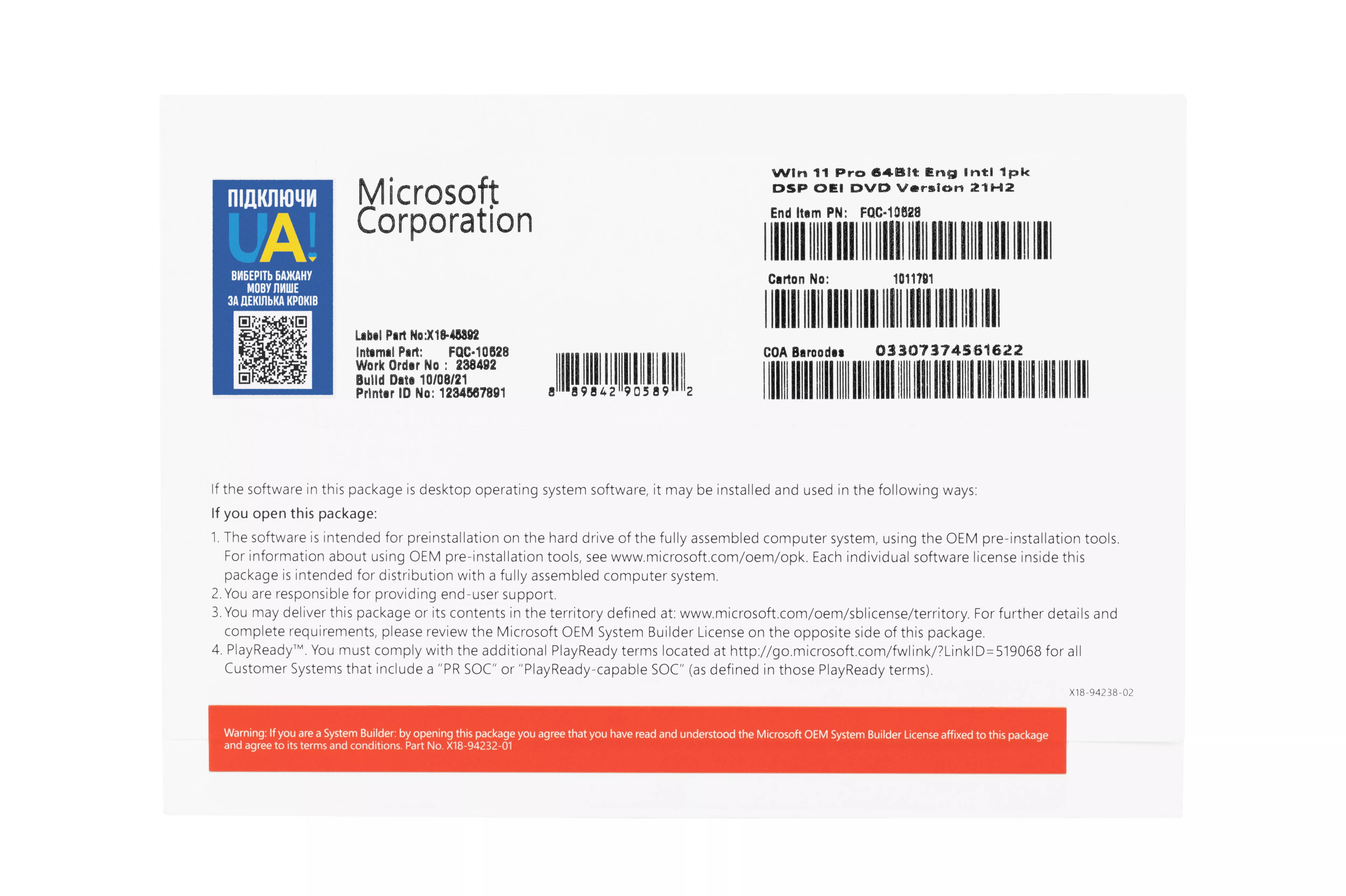 | Versiune | Windows 11 Pro Eng, OEM DVD |