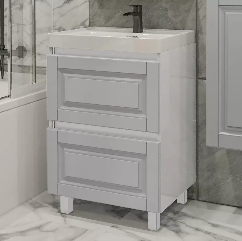 Dulap cu lavoar PS ВКДТБ-90(2), 90 cm, Gri deschis mat