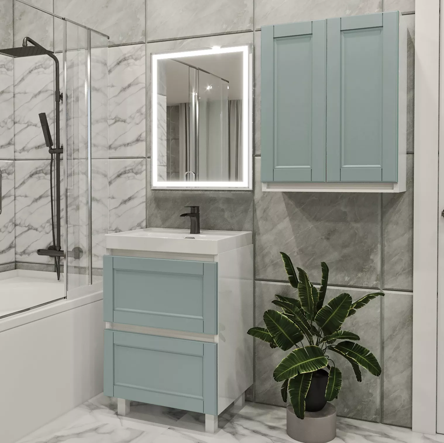 Set de mobila de baie PS Lotos 60-60 (vops./PAL), Verde deschis mat