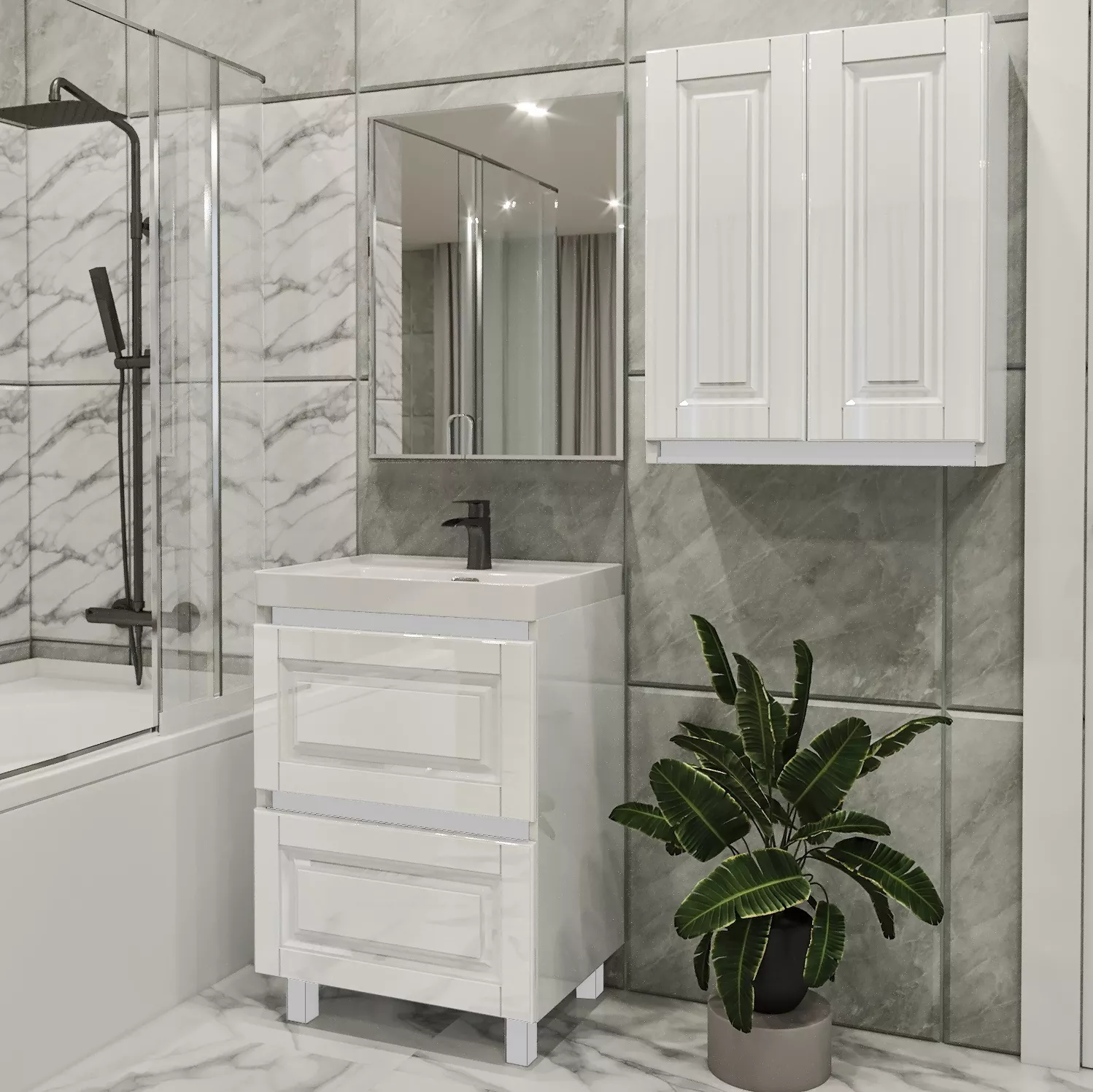 Set de mobila de baie PS Lotos 60-60 (vops./vops.), White gloss
