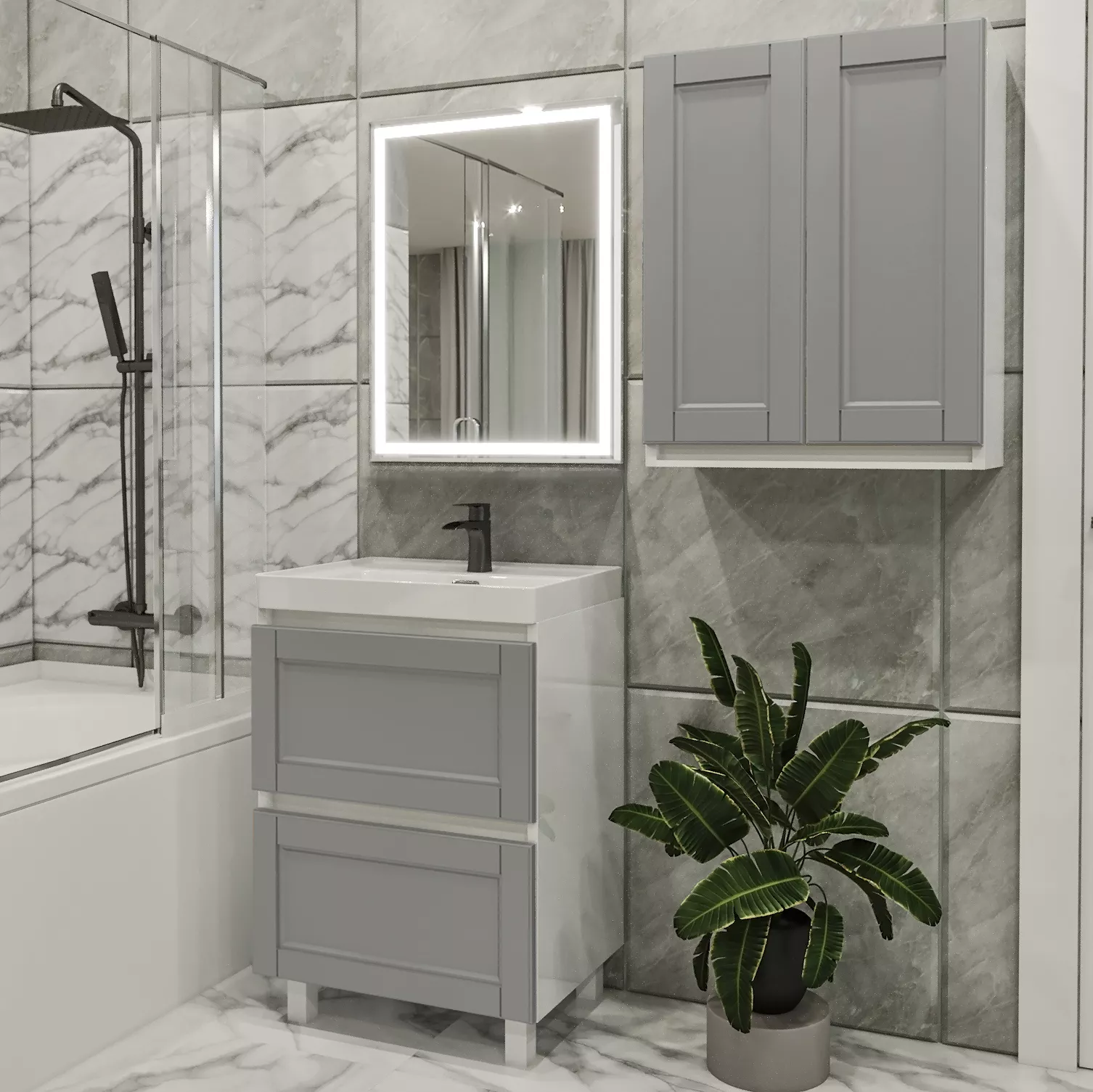 Set de mobila de baie PS Lotos 60-60 (vops./vops.), Gri mat