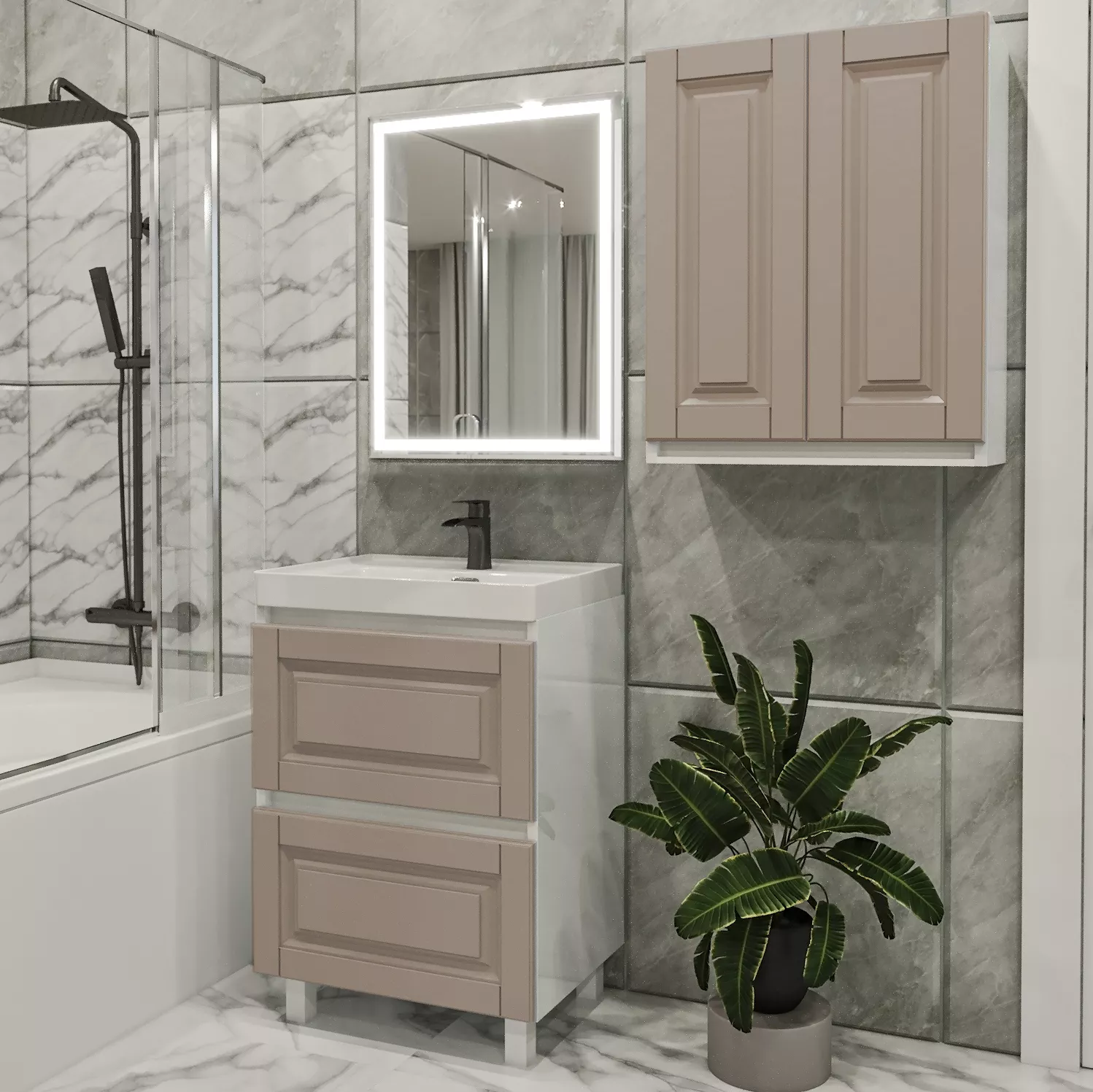 | In set | Dulap sub lavoar, oglindă, Dulap penal suspendat, Lavoar Sanovit Luxury-60 |