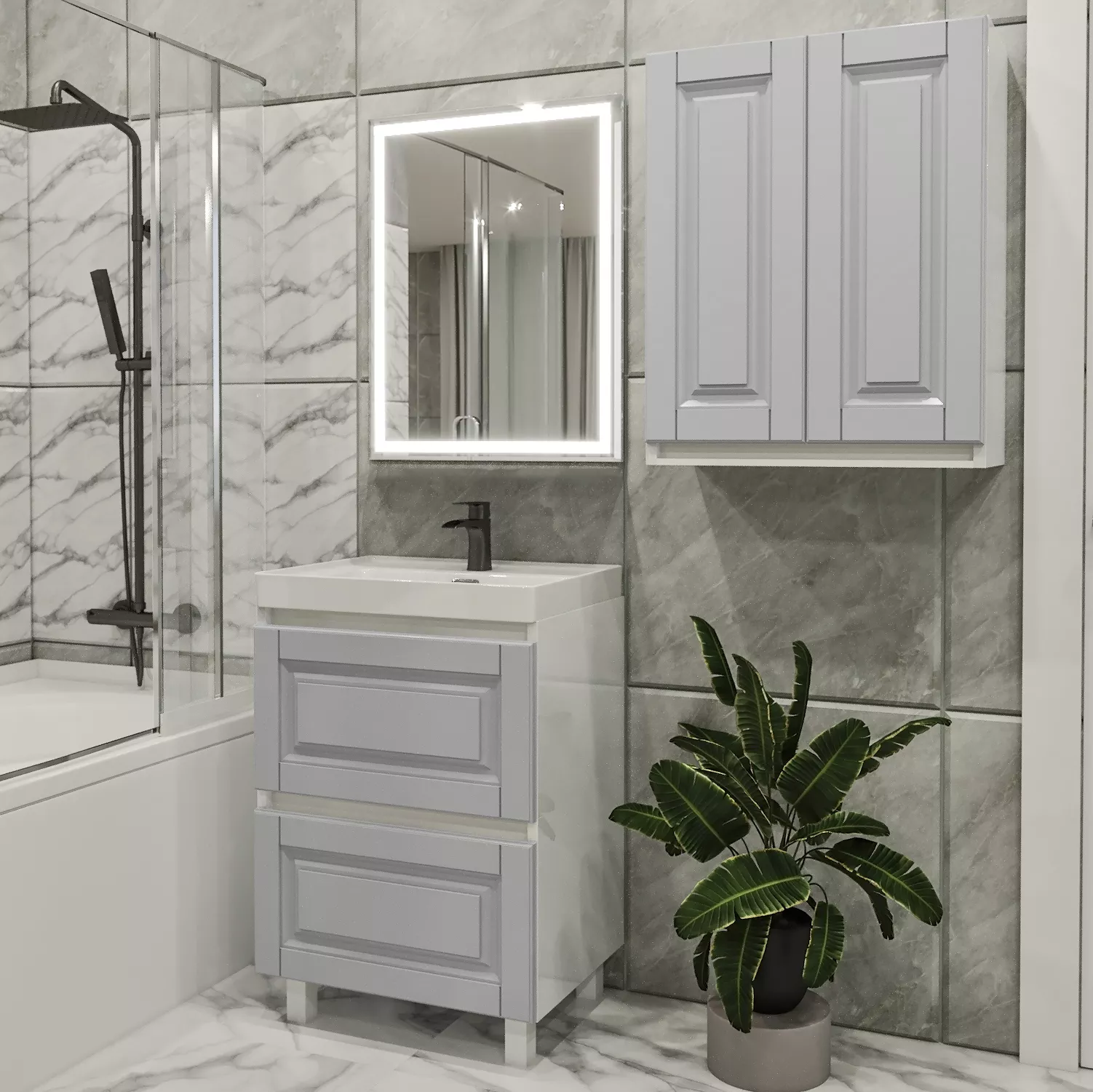 Set de mobila de baie PS Lotos 80-60 (vops./vops.), Gri deschis mat